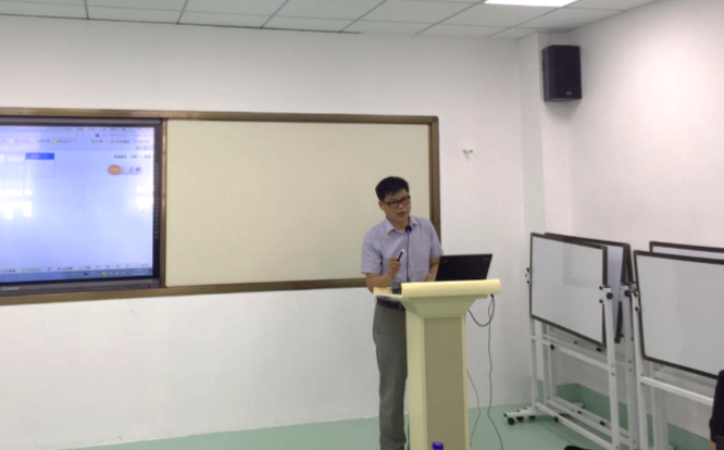 南京云库公司负责人薛安顺作了《MOOC 设计与制作》的主题报告,讲解了MOOC制作的流程、MOOC表现形式及教师在MOOC录制前应做的准备工作等。南京凌越铭盛公司负责人李威介绍了我校新建的用于翻转课堂教学改革的小班研讨教室的使用方法及注意事项。