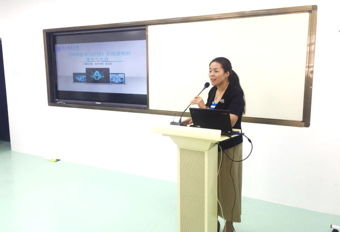 胡素君副教授作了《〈网络技术与应用〉在线课程建设与实践》的主题报告,胡教授从课程建设、校内SPOC实践、暑期慕课实施及建设与实践总结四方面的内容分享了其在课程制作、实施翻转课程教学改革、中国大学MOOC平台开课的经验与体会。报告结束后参会教师与胡素君老师围绕共同关注的问题进行了深入的互动与讨论。
