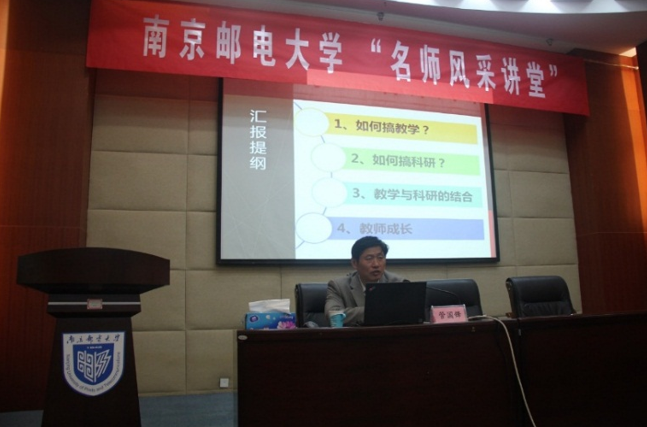 11月16日下午,江苏省教学名师、南京工业大学教授管国锋做客我校“名师风采讲堂”,在仙林校区行政楼一楼报告厅为大家带来了一场名为“科教融合,助推教师成长”的报告。本次活动由学校教师教学发展中心主办、材料科学与工程学院承办。活动由教师教学发展中心主任兼教务处副处长赵允玉主持,材料科学与工程学院副院长沈清明、新入职青年教师及学校实施导师制项目的青年教师,参加了本次活动。