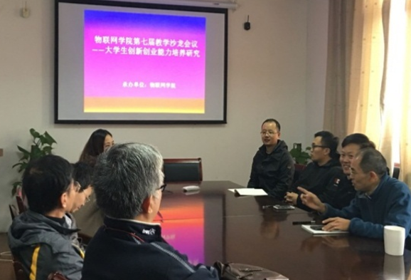 为全面贯彻国家关于进一步加强大学生创新创业能力培养工作相关文件精神,2018年11月14日下午,由教务处(教师教学发展中心)主办、物联网学院承办的“大学生创新创业能力培养研究”教学沙龙在三牌楼校区物联网学院302会议室举行。本次沙龙邀请校团委创新创业部部长乔祖琴老师就“挑战杯”全国大学生系列科技学术竞赛的选题与申报为学院老师进行详细解读。物联网学院党委书记周健、党委副书记李承晟以及学院20多位老师参加了沙龙活动。会议由学院智慧物联网创新中心主任丁飞老师主持。