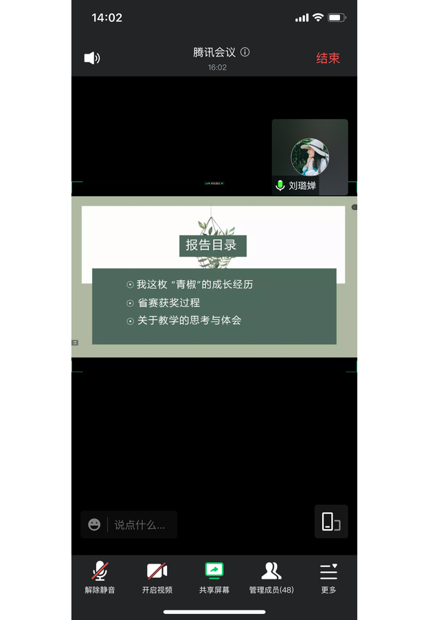 刘璐婵老师结合她参加省级教学竞赛的获奖过程,讲述了她作为一枚大学“青椒”的教学成长历程,分享了她关于大学教学的思考与体会。