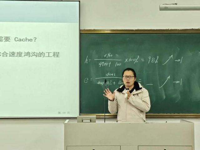 随后,资深教师张雷带来教学示范展示。与基础讲解不同,张雷老师以“计算机组成架构”为切入点,先点明高速缓冲存储器在整个计算机系统中的定位与作用,再自然过渡到具体知识点讲解。她创新性地将抽象理论与实际应用案例结合,通过“为什么需要高速缓冲存储器”“它如何解决系统速度瓶颈”等问题引导,让学生理解知识点背后的实际意义;同时注重串联前后章节内容,明确高速缓冲存储器与CPU、主存之间的关联,帮助学生搭建完整的《计算机组成原理》知识框架。其教学过程逻辑缜密、案例鲜活,充分体现了资深教师在课程整体把控与知识体系构建上的丰富经验。
